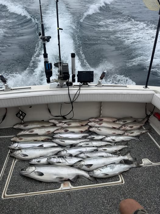 Chinook (King) Salmon: The big dogs of the lake, Kings can top 30 pounds. They're the hardest fighting fish in the Great Lakes, known for powerful runs that'll have your drag screaming. Kings are typically targeted later in the summer and into fall as they stage for their spawning run. Landing one of these brutes is a true accomplishment for any angler.